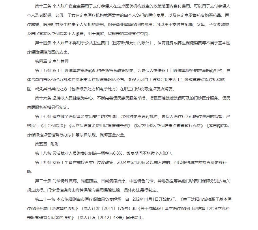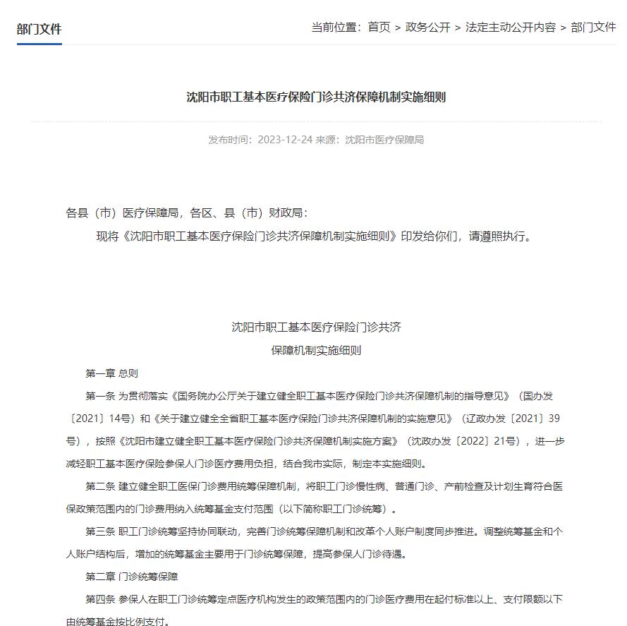 沈陽市職工基本醫(yī)療保險門診共濟(jì)保障機(jī)制實(shí)施細(xì)則